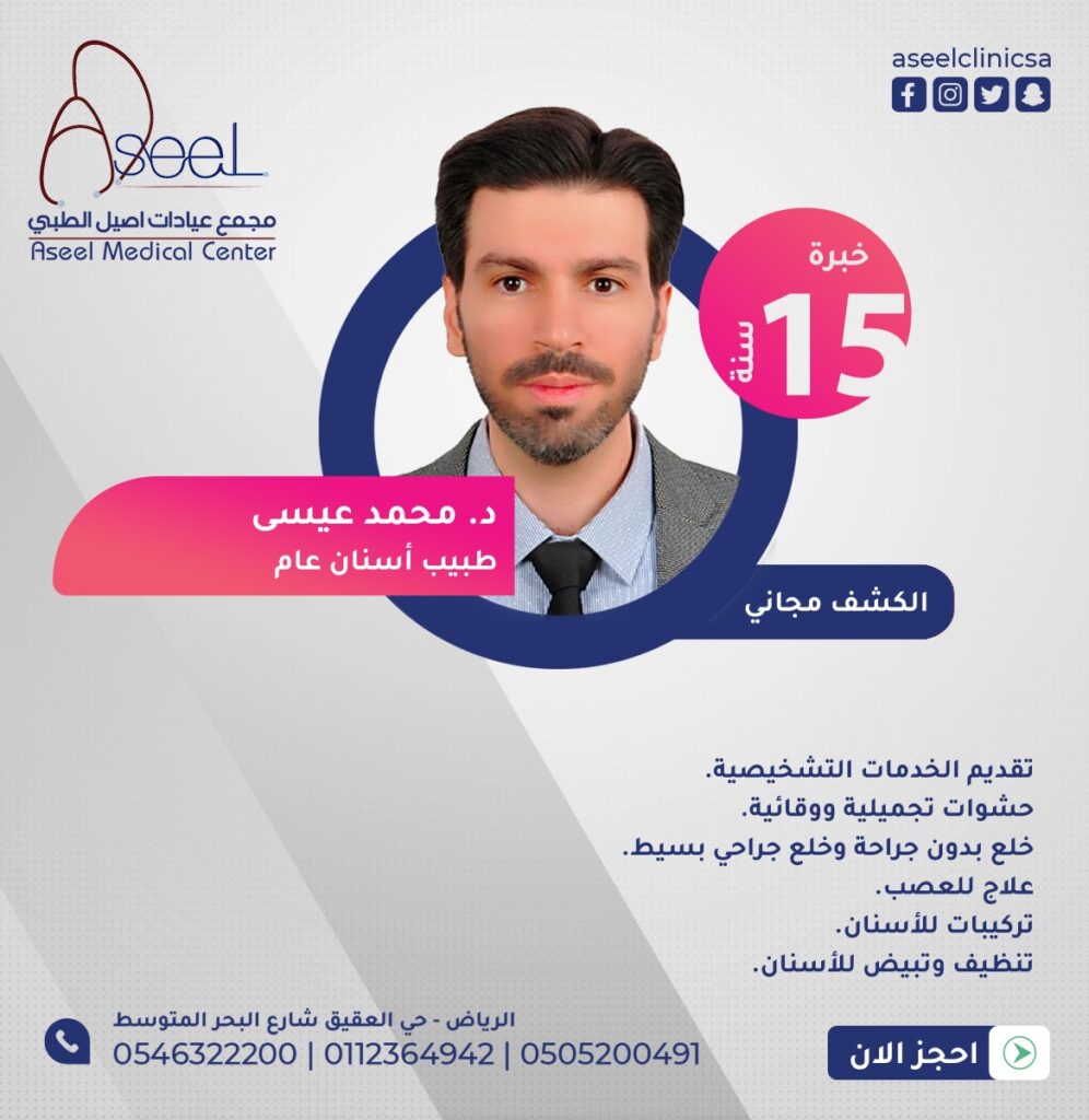 مجمع أصيل الطبيعيادات طبية متكاملة - اسنان- تجميل - ليزر- جلدية - تناسلية باطنية - عام - نساء وولادة - الاطفال - نفسية - تغدية - اشعة - مختبر طبي Website TiKToK Contact جهاز ال indiba لنحت الجسم Youtube Instagram Linkedin Facebook Twitter جميع الحقوق محفوظة © مجمع اصيل الطبي